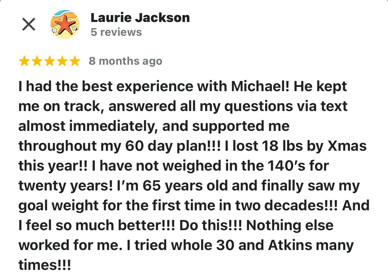 My starting program length is two months. Weight loss is never easy nor is changing ones habits, that’s why I prefer working with clients over a longer timespan.